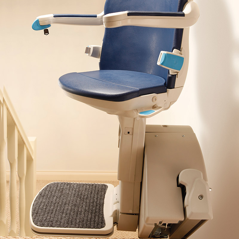 This stairlift is a space saver with an optional hinged rail that folds out of the way of any doorways or pathways plus the armrests, footrest and seat fold away.