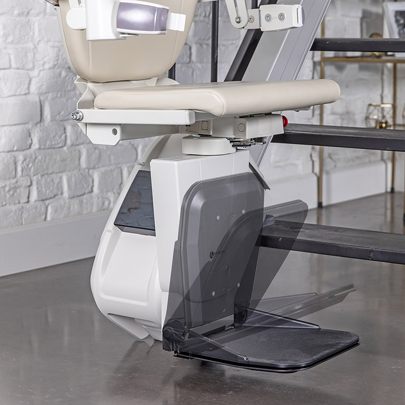 Foldup seat, footrest and armrests save space for other stair users