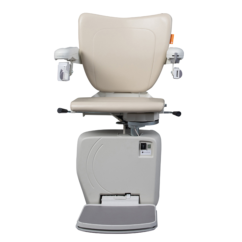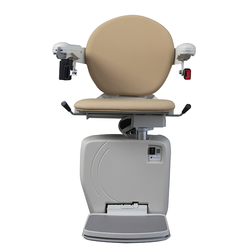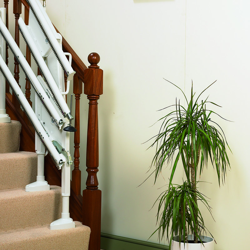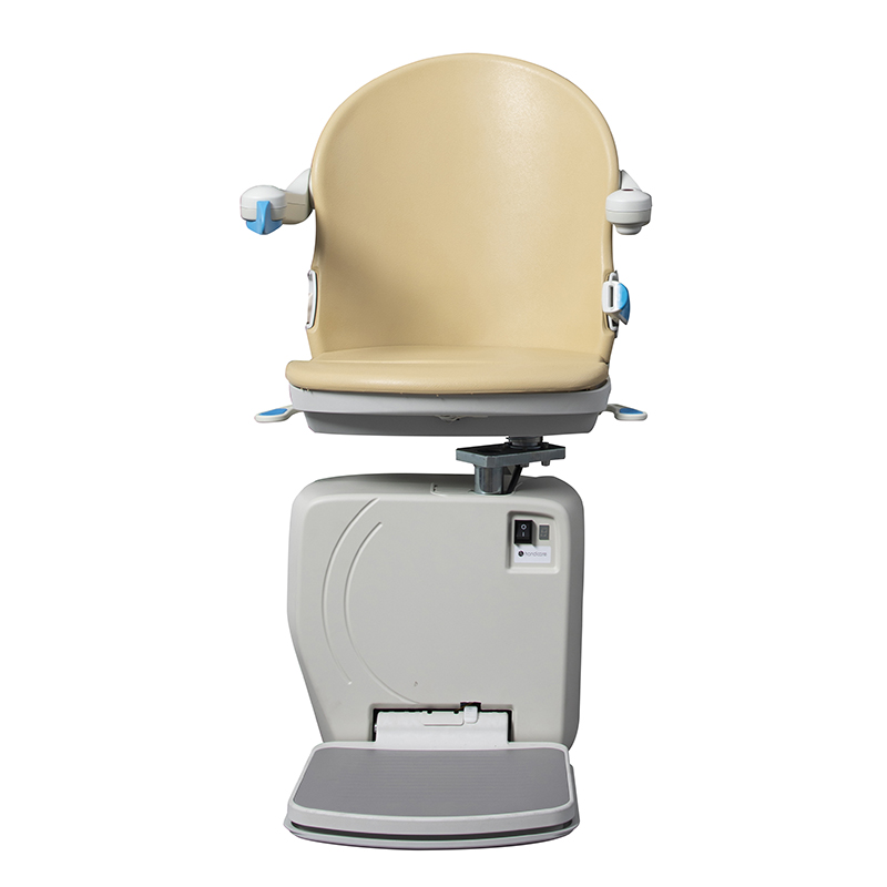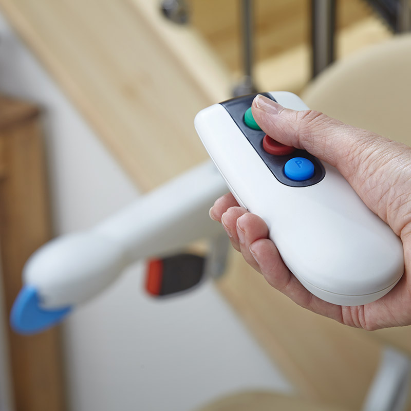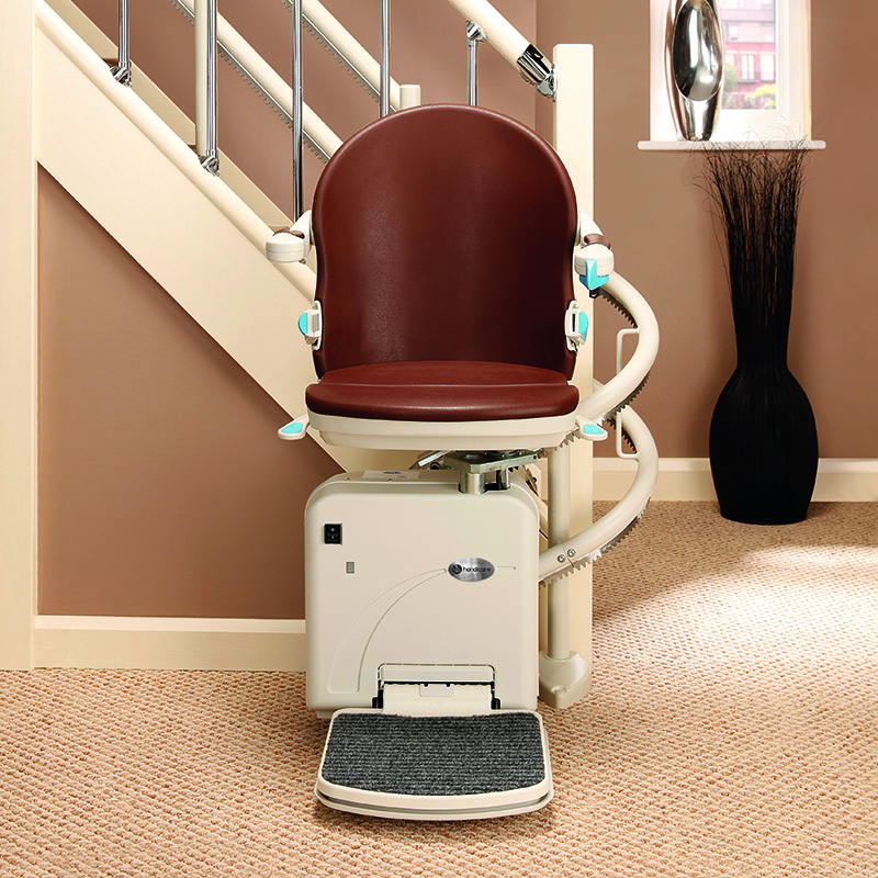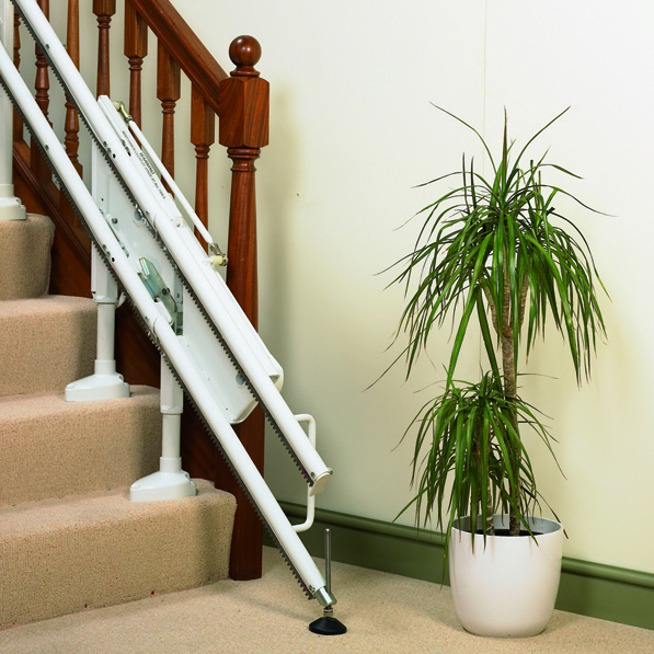 This stairlift comes with a wide range of options including a powered hinge that lifts the track out of the way.